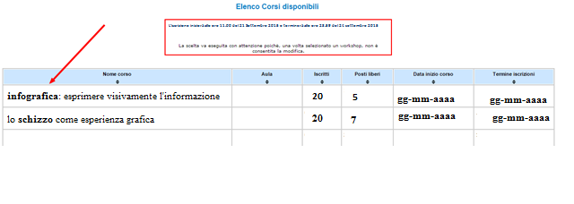 Per effettuare la scelta è necessario agire dalla pagina personale del portale della didattica e selezionare il workshop che si intende frequentare.